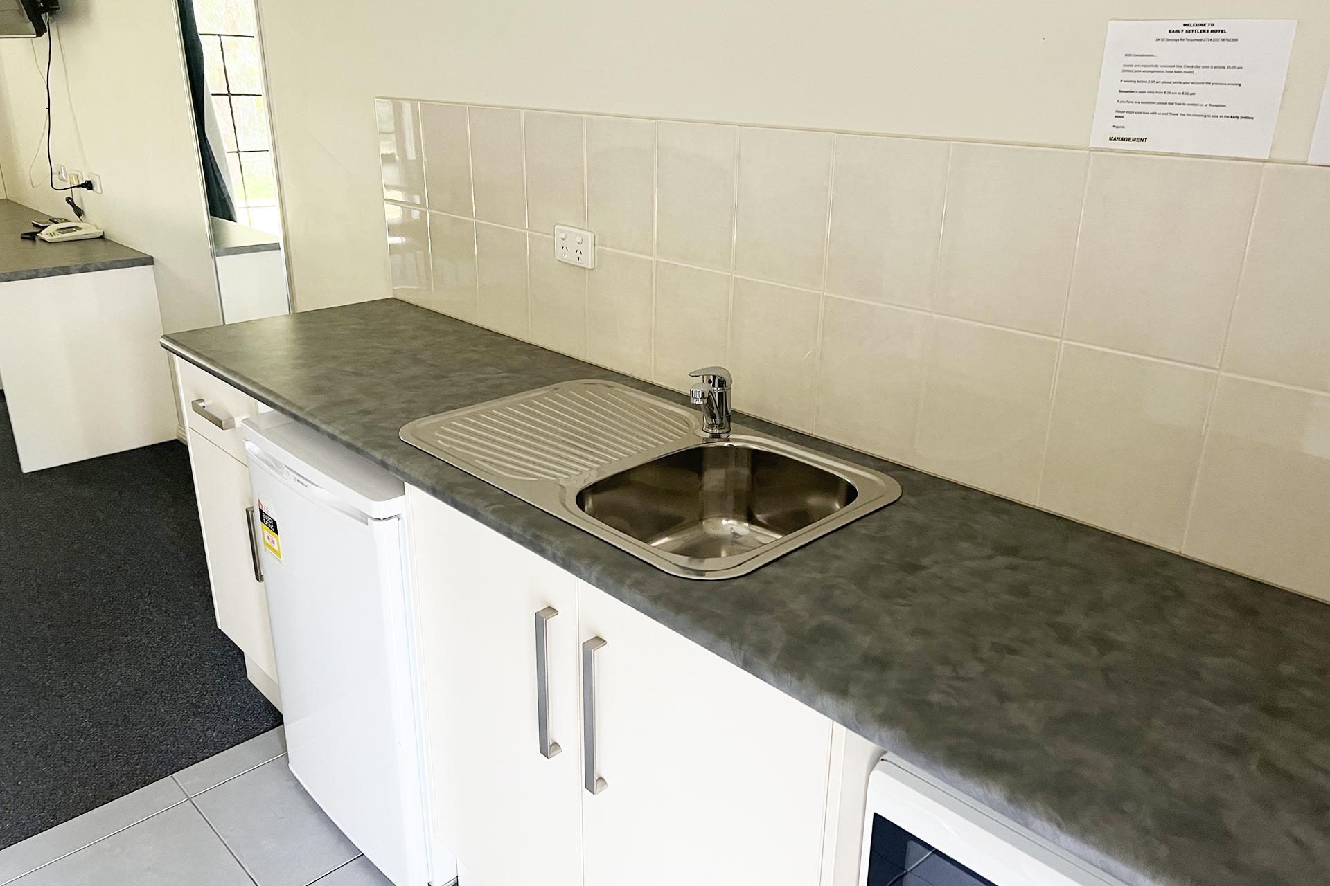 Early Settlers has 12 well-appointed, fully refurbished, Twin Queen rooms with two comfortable Queen beds. Including a work desk that doubles as a meal table, your own bathroom, split system heating/aircon, kitchenette with coffee/tea-making facilities, a microwave, fridge and cutlery/crockery. Allow natural light and fresh air in through the rear sliding safety screen door.