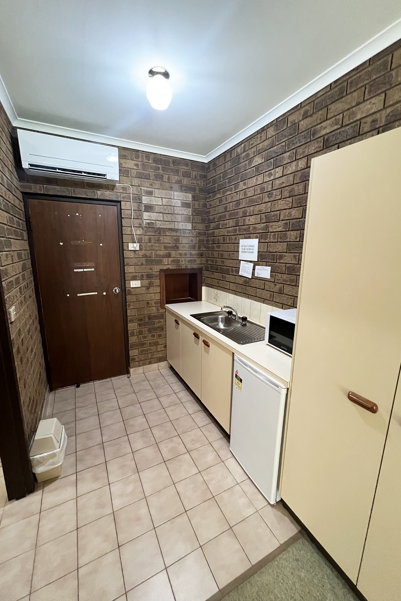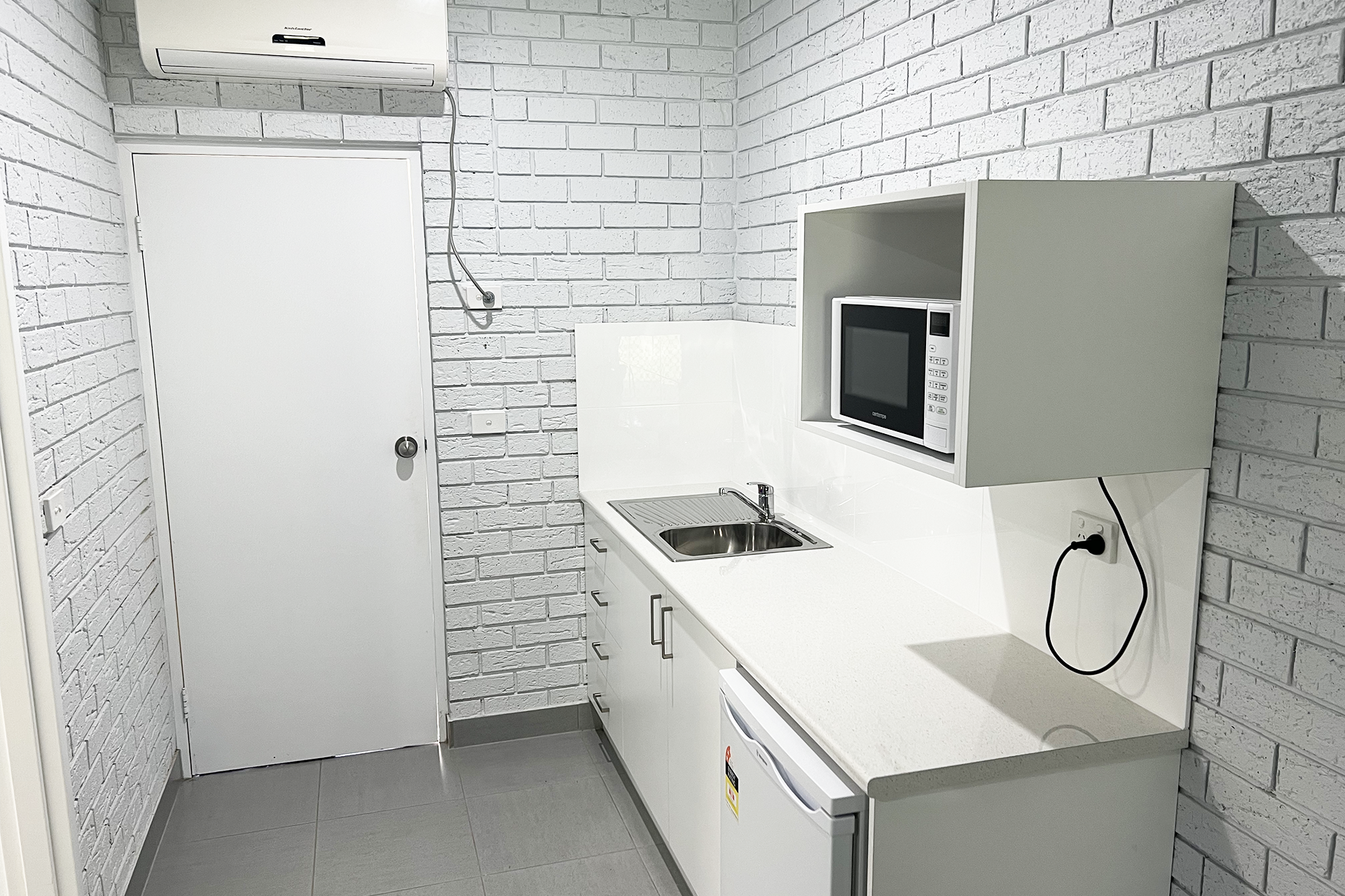 The room includes a work desk that doubles as a meal table, your own bathroom, split system heating/aircon, kitchenette with coffee/tea-making facilities, a microwave and cutlery/crockery. Allow natural light and fresh air in through the rear sliding safety screen door.